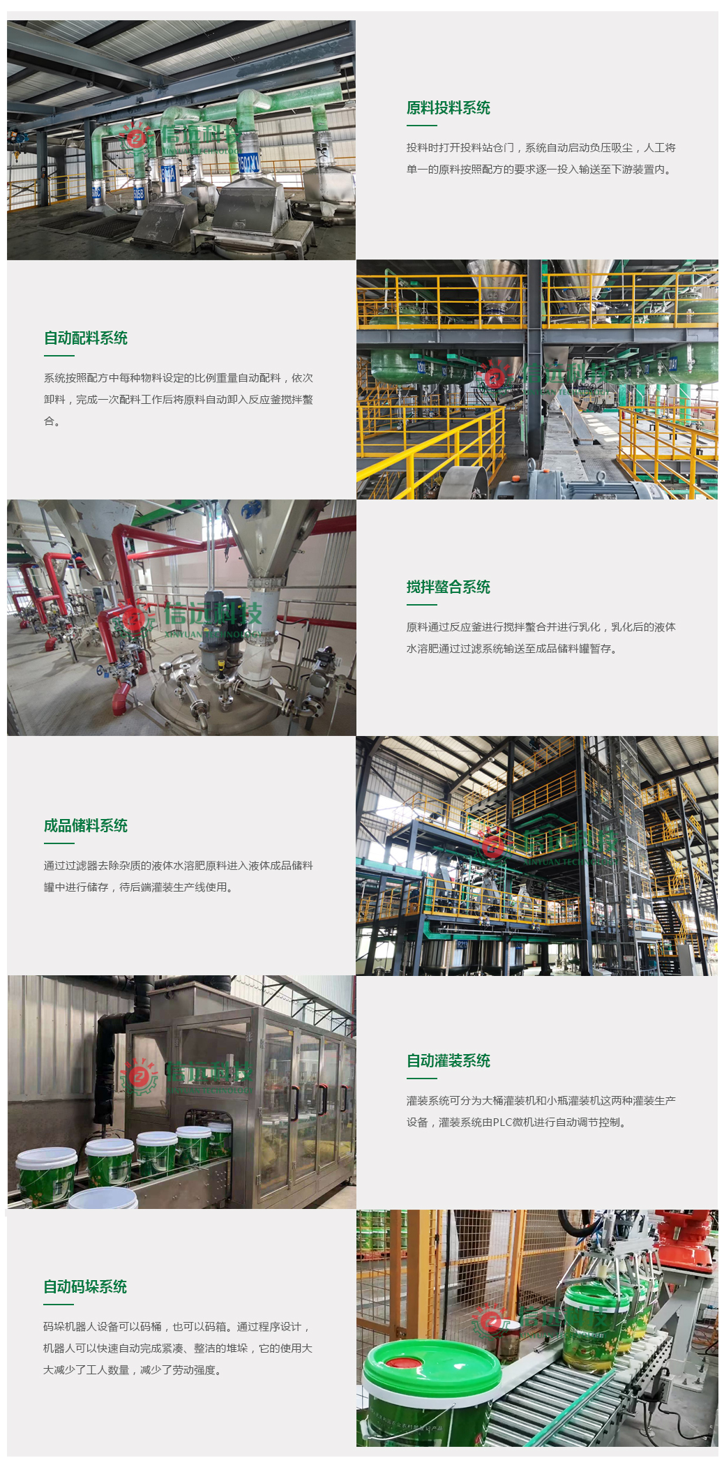 生產(chǎn)中微量元素、大量元素、氨基酸、腐植酸等多種類型的液體肥產(chǎn)品